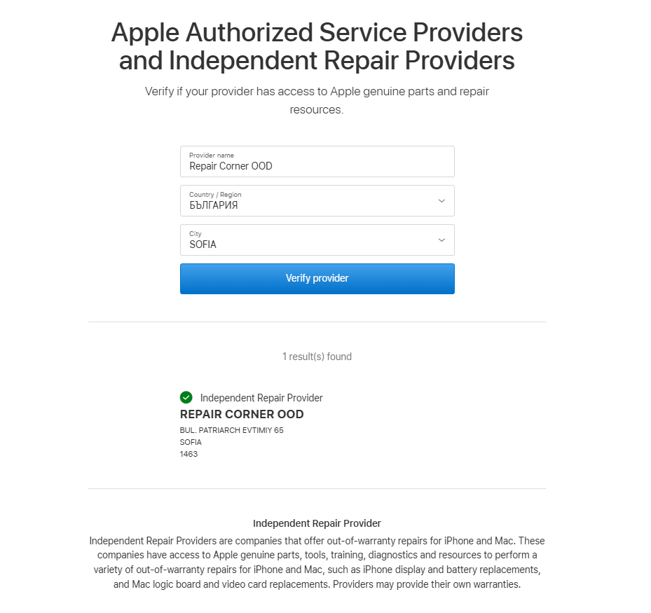 Repair Corner ремонтира вашето устройство на Apple с оригинални части на Apple от сертифицирани техници за iPhone, Mac и MacBook.